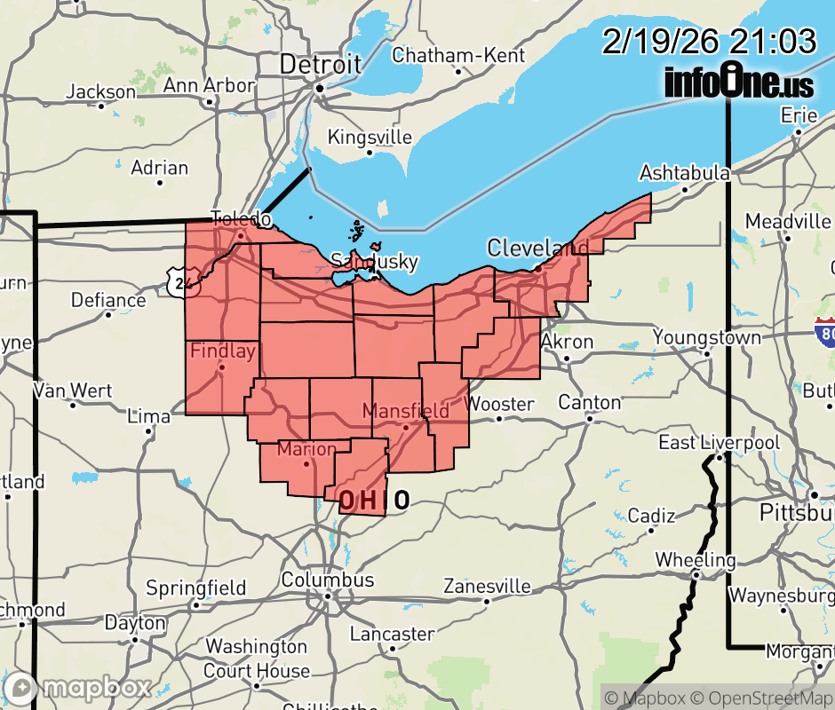 Canceled 2/20/26 1:37 AM Wind Advisory issued February 19 at 9:01PM EST until February 20 at 7:00PM EST by NWS Cleveland OH * WHAT... West-Southwest winds 25 to 35 mph with gusts up to 50 mph expected. * WHERE... Portions of north central, northeast, and northwest Ohio. * WHEN... From 7 AM to 7 PM EST Friday. * IMPACTS... Gusty winds will blow around unsecured objects. Tree limbs could be blown down and a few power outages may result. ![]() |