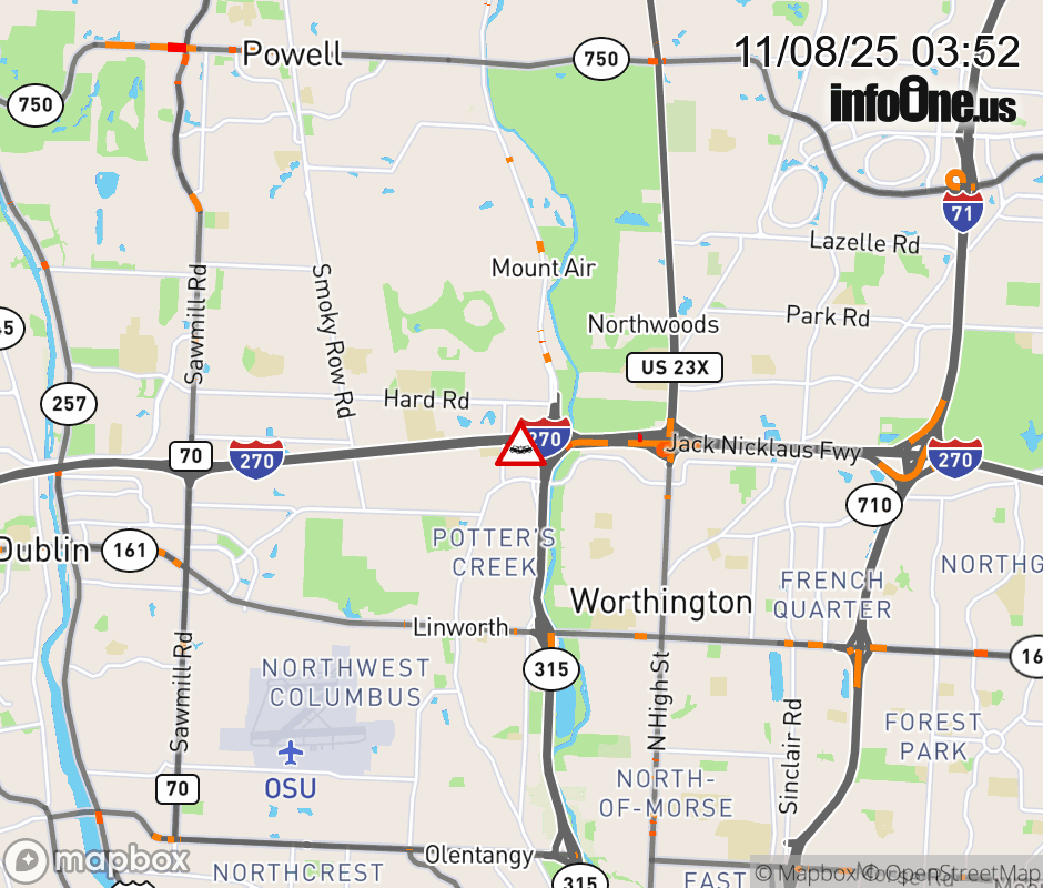 Ramp I-270 East to SR-315 South CLOSED because of a crash. ![]() |
