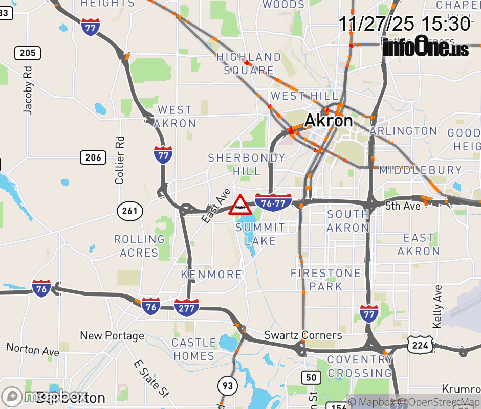 The right lane is blocked on I-76 West/I-77 North beyond SR-59/Dart Ave, due to a crash. Updated: Thu 11/27/25 3:30 PM EST ![]() Updated: Thu 11/27/25 3:30 PM EST |