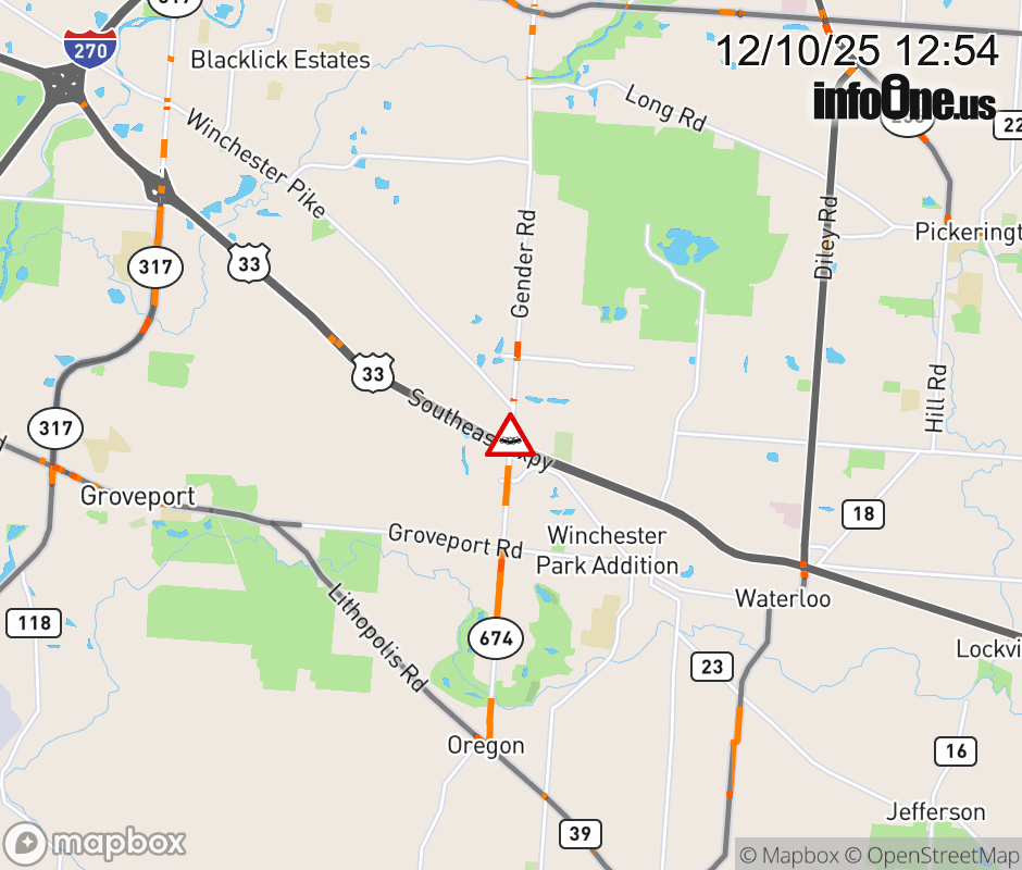 Expect lane closures on SR-674 North at US-33 West, due to a crash. ![]() |