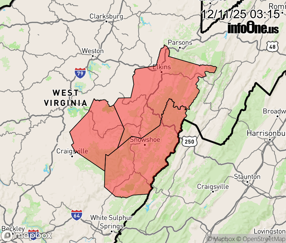 Canceled 12/11/25 9:47 AM Blizzard Warning issued December 11 at 3:13AM EST until December 11 at 10:00AM EST by NWS Charleston WV * WHAT... Blizzard conditions. Additional snow accumulations of 1 to 2 inches expected. Locally higher amounts possible. Winds gusting as high as 45 mph. * WHERE... Northwest Pocahontas, Southeast Randolph, and Southeast Webster Counties. * WHEN... Until 10 AM EST this morning. * IMPACTS... Plan on slippery road conditions. The hazardous conditions could impact the morning commute. Gusty winds could bring down tree branches. ![]() |