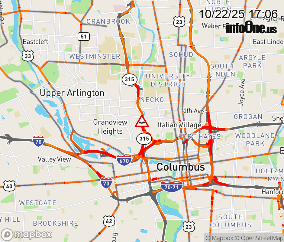 The right shoulder is blocked on SR-315 South at I-670 East, due to a crash. ![]() |