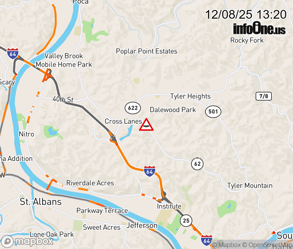 Vehicle Crash on WV-62 (5800 BLK of Washington St W) in Cross Lanes. ![]() |