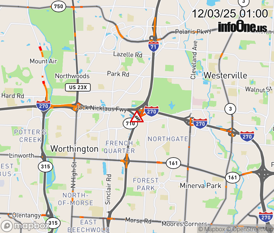 Canceled 12/3/25 4:56 AM Location: Ramp I-270 East to I-71 North (Northside) N, OH Construction.
