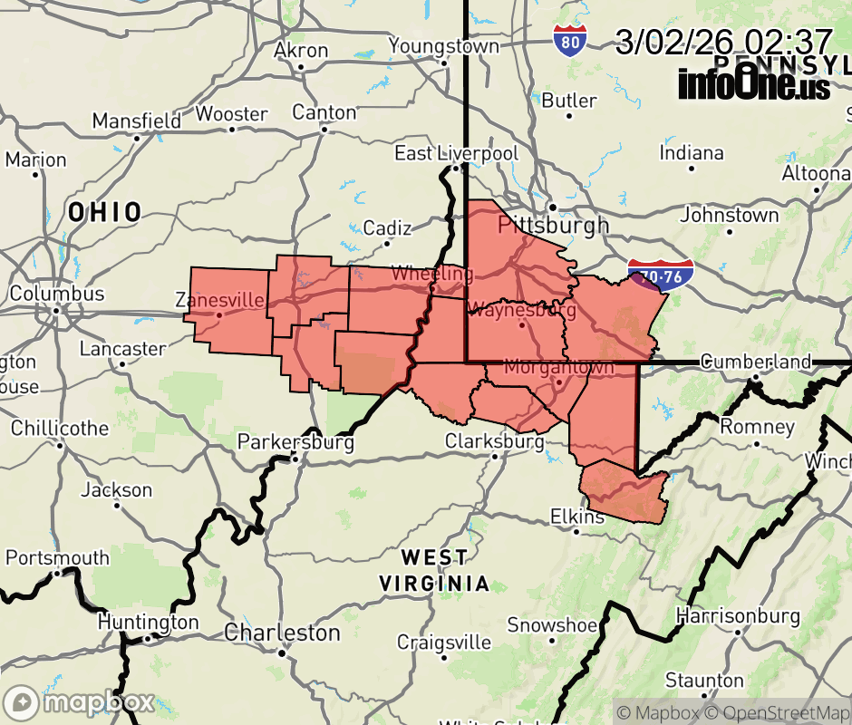 Canceled 3/2/26 1:00 PM Special Weather Statement issued March 2 at 2:36AM EST by NWS Pittsburgh PA A quick moving disturbance will pass through the region along and south of I-70 towards dawn for the morning commute. Expect snow along this region with up to an inch possible outside of the higher terrain. The elevated terrain of Western Preston and Western Tucker Counties may recieve up to 1 to 2 inches. Expect the snow to change to rain by 1 pm. ![]() |