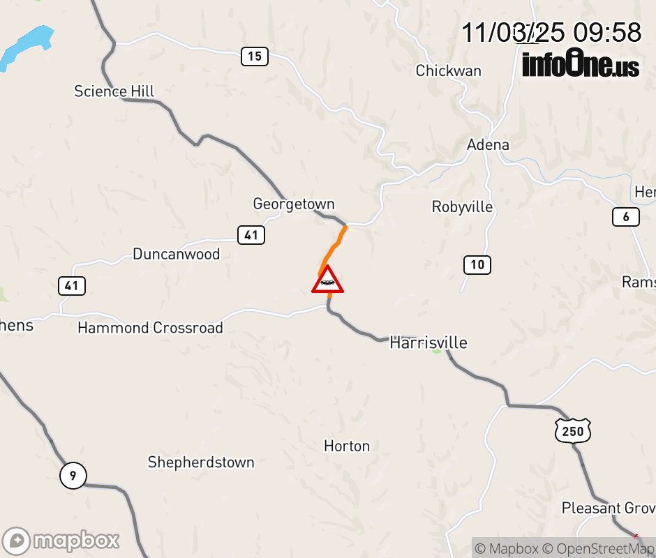 Expect lane closures on US-250 in both directions 0.3 miles beyond Hagmar Ridge Rd. (MM: 28.6), due to involving a semi-trailer crash. Expect lane closures on US-250 in both directions 0.3 miles beyond Hagmar Ridge Rd. (MM: 28.6), due to involving a semi-trailer crash. Updated: Mon 11/3/25 9:58 AM EST ![]() Updated: Mon 11/3/25 9:58 AM EST |
