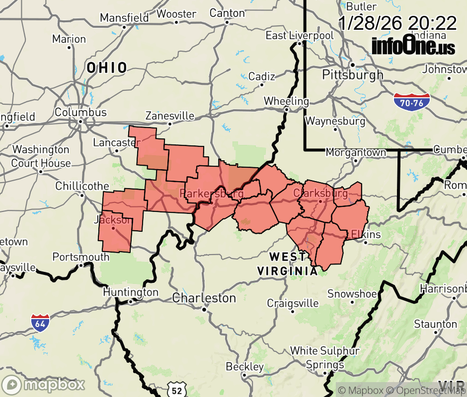 Canceled 1/29/26 12:59 AM Cold Weather Advisory issued January 28 at 8:20PM EST until January 29 at 11:00AM EST by NWS Charleston WV * WHAT... Very cold wind chills as low as 9 below zero. * WHERE... Portions of southeast Ohio and central and northern West Virginia. * WHEN... Until 11 AM EST Thursday. * IMPACTS... The cold wind chills as low as 10 below zero could result in hypothermia if precautions are not taken. ![]() |