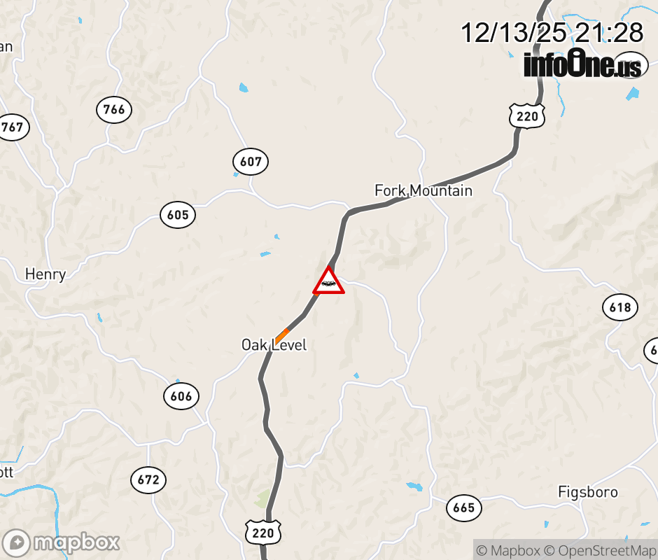 On US-220 in the County of Franklin, in the vicinity of Country Ridge Rd; Rt. 609N/S (Franklin County), motorists can expect delays due to a multi-vehicle crash. All north lanes are closed. Updated: Sat 12/13/25 9:28 PM EST ![]() Updated: Sat 12/13/25 9:28 PM EST |