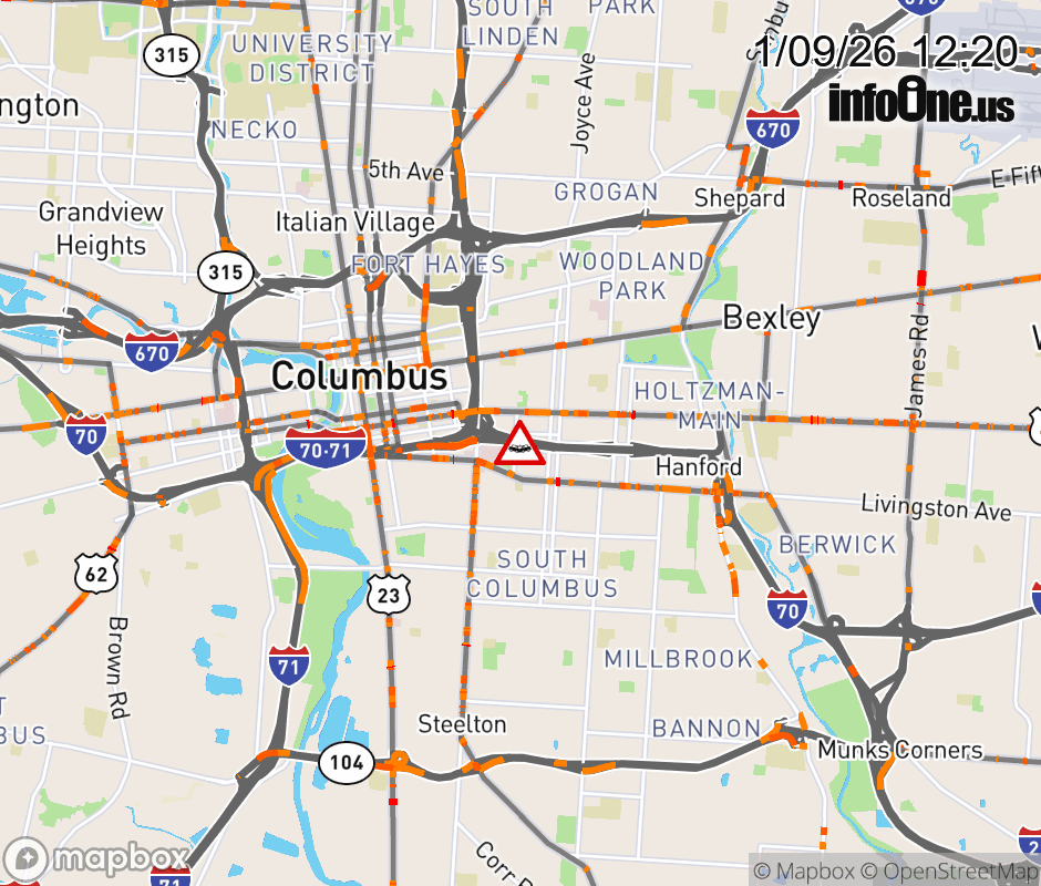 The right lane is blocked on Ramp I-70 West to I-71 North, due to a crash. ![]() |