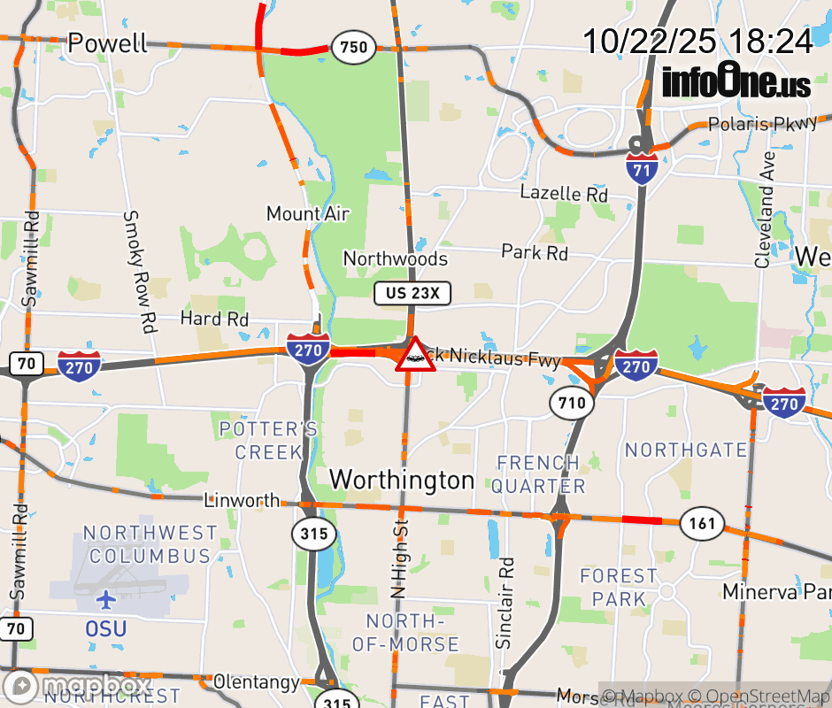 The right lane is blocked on I-270 East beyond US-23, due to a crash. ![]() |
