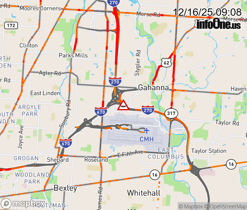 Canceled 12/16/25 9:40 AM Location: Ramp I-270 North to I-670/US-62 West N, OH Accident.