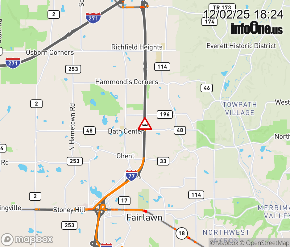 The right lane is blocked on I-77 North beyond Ghent Rd, due to a crash. ![]() |