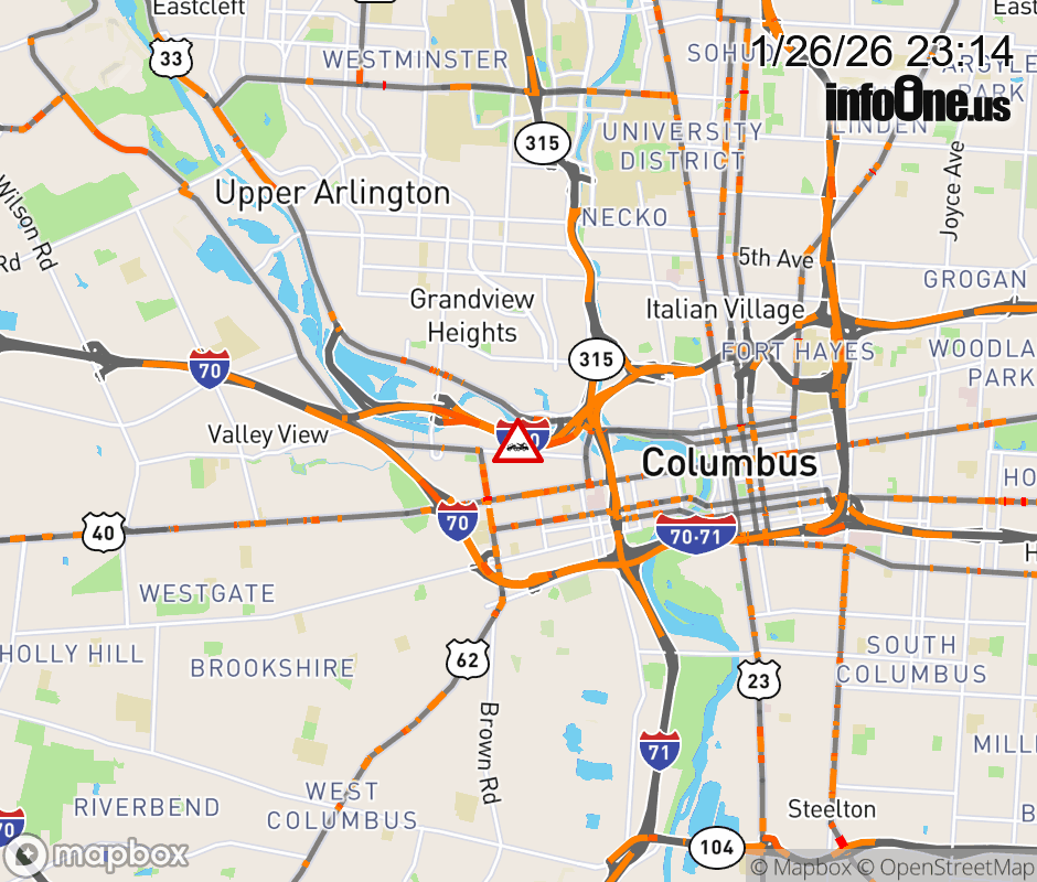 The right lane is blocked on I-670 East at US-33/SR-315 South, due to a disabled vehicle. ![]() |