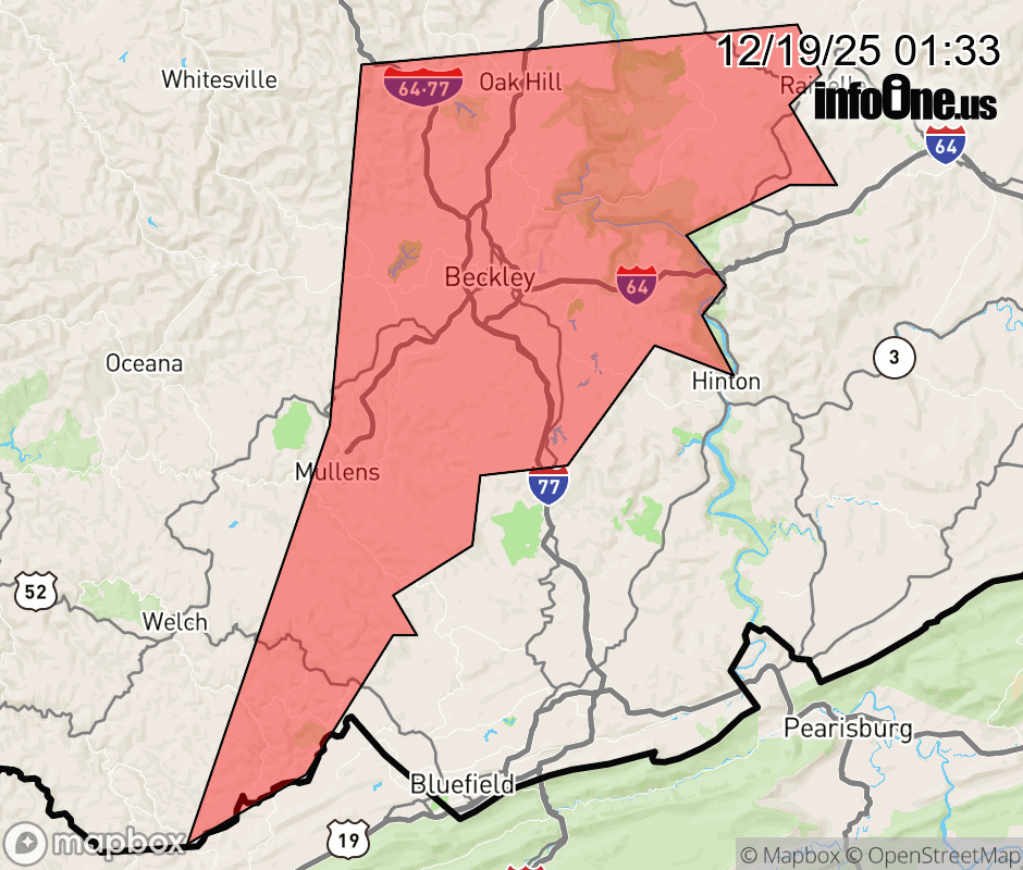 Canceled 12/19/25 2:00 AM Special Weather Statement issued December 19 at 1:32AM EST by NWS Charleston WV At 132 AM EST, Doppler radar was tracking strong thunderstorms along a line extending from 6 miles west of Mount Hope to near Mullens to near Tiptop. Movement was east at 45 mph. HAZARD...Wind gusts up to 50 mph. SOURCE...Radar indicated. IMPACT...Gusty winds could knock down tree limbs and blow around unsecured objects. Locations impacted include... Beckley, Rainelle, Babcock State Park, Oak Hill, Mullens, Mount Hope, Mabscott, Sophia, Gary, Northfork, Crab Orchard, Dry Creek, Macarthur, Bradley, Shady Spring, Beaver, Piney View, Stanaford, Coal City, and Prosperity. This includes the following highways... West Virginia Turnpike between mile markers 28 and 62. Interstate 64 in West Virginia between mile markers 120 and 137. Route 19 between mile markers 1 and 13. ![]() |