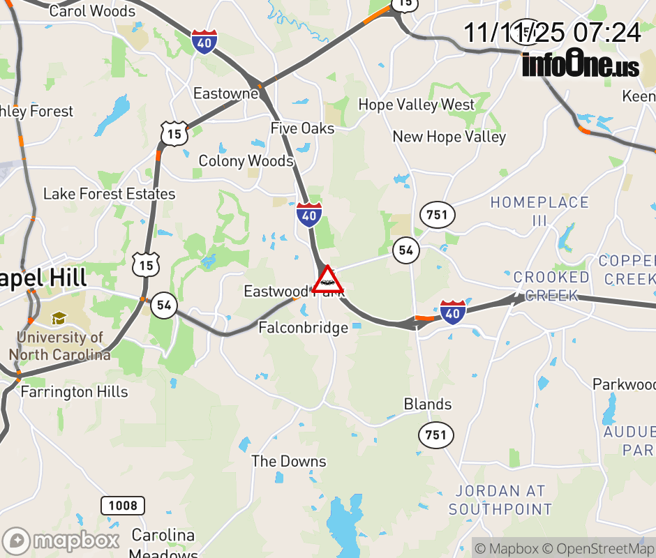 The left lane is closed at Exit 273 (NC 54). ![]() |