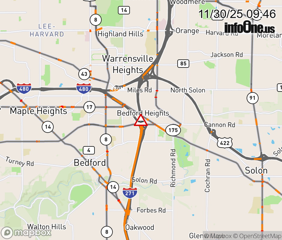 Expect lane closures on I-271 South at Rockside Rd, due to a crash. ![]() |