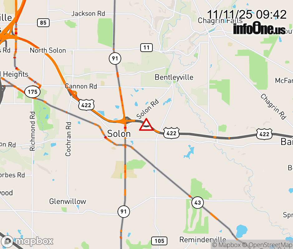 Expect lane closures on US-422 East beyond SR-91/SOM Center Rd, due to a crash.