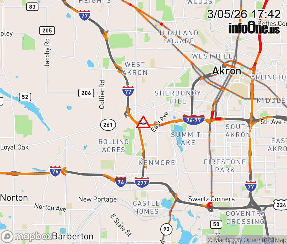 The left lane is blocked on Ramp I-76 East to I-77 North, due to a crash. ![]() |