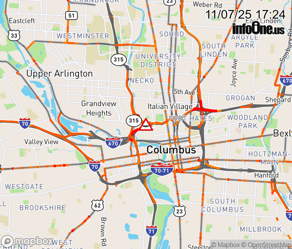 The left lane is blocked on Ramp SR-315 South to I-670 East, due to a crash. ![]() |