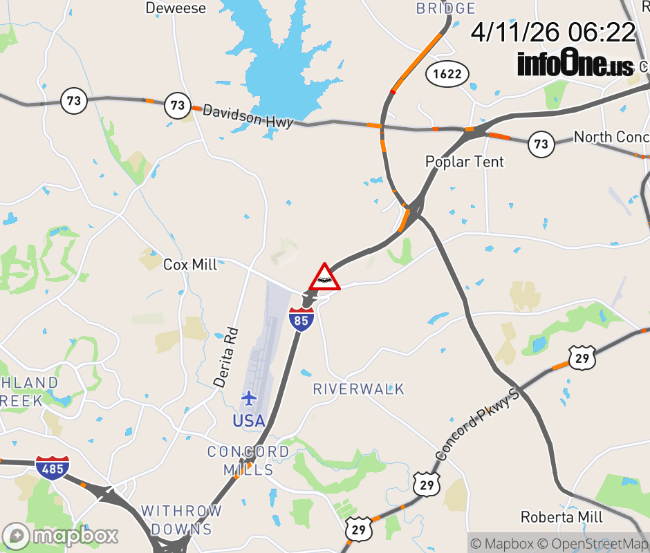 The two left lanes has reopened near Exit 52 (Poplar Tent Rd). Updated: Sat 4/11/26 6:22 AM EDT ![]() Updated: Sat 4/11/26 6:22 AM EDT |