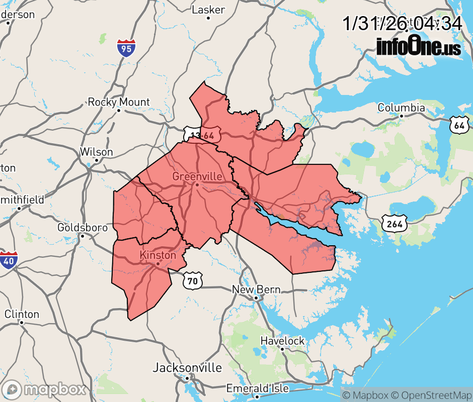 Canceled 1/31/26 1:45 PM Winter Storm Warning issued January 31 at 4:33AM EST until February 1 at 4:00PM EST by NWS Newport/Morehead City NC * WHAT... Heavy snow expected. Total snow accumulations between 8 and 11 inches with locally higher amounts possible. Winds gusting as high as 45 mph. * WHERE... Beaufort, Greene, Lenoir, Martin, and Pitt Counties. * WHEN... Until 4 PM EST Sunday. * IMPACTS... Whiteout conditions are expected and will make travel treacherous and potentially life-threatening. Gusty winds could bring down tree damage. ![]() |