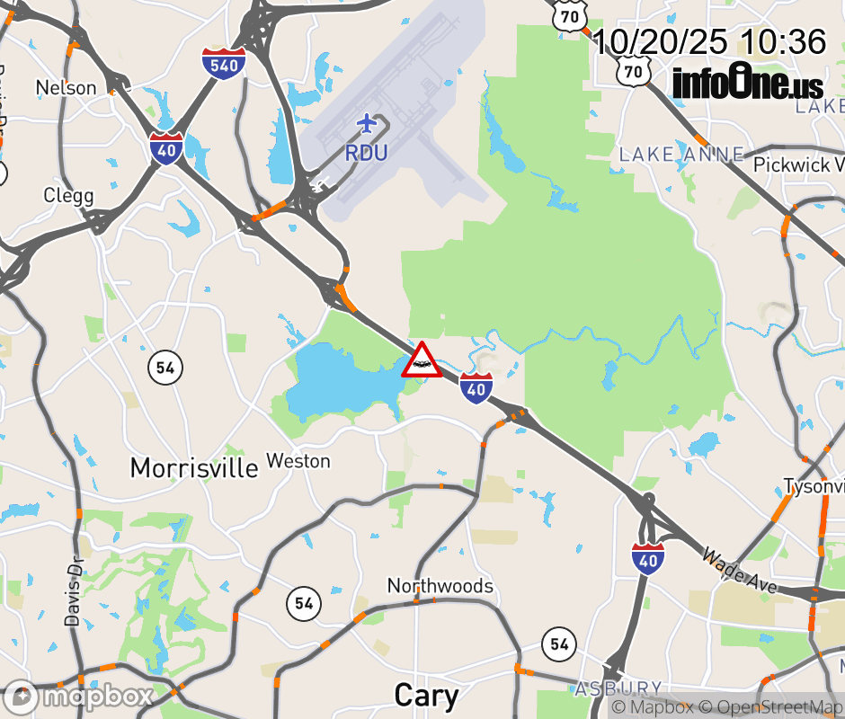 The two right lanes are closed past Exit 285 (Aviation Pkwy). Updated: Mon 10/20/25 10:36 AM EDT ![]() Updated: Mon 10/20/25 10:36 AM EDT |
