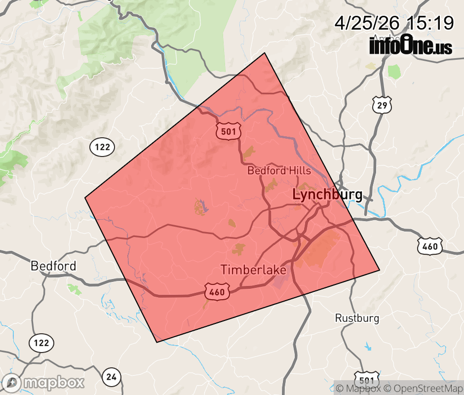 Canceled 4/25/26 3:45 PM Special Weather Statement issued April 25 at 3:18PM EDT by NWS Blacksburg VA At 315 PM EDT, Doppler radar was tracking a strong thunderstorm over Goode, or near Forest, moving northeast at 25 mph. HAZARD...Wind gusts up to 40 mph and heavy rain. SOURCE...Radar indicated. IMPACT...Gusty winds could knock down tree limbs and blow around unsecured objects. Locations impacted include... Lynchburg... Forest... Coleman Falls... Boonsboro... Goode... Naola... and Timberlake. ![]() |