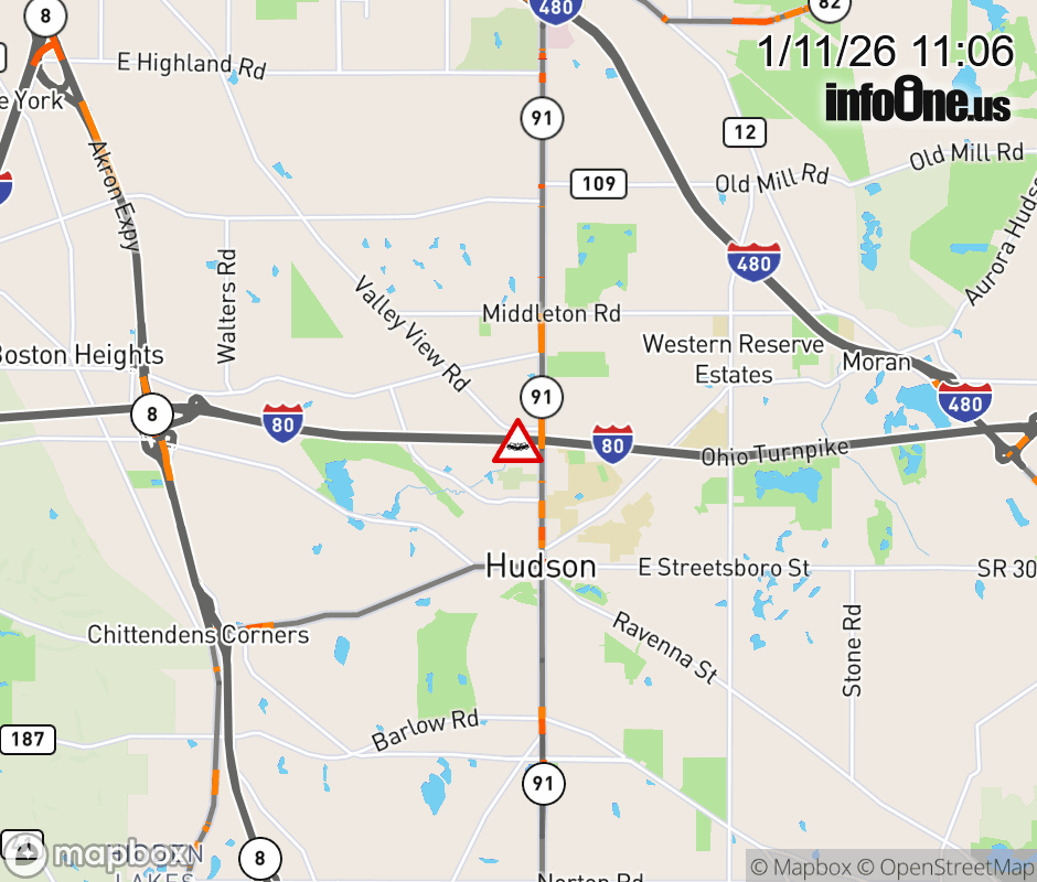 Expect lane closures on I-80 East (Ohio Turnpike) beyond SR-8, due to a crash. ![]() |