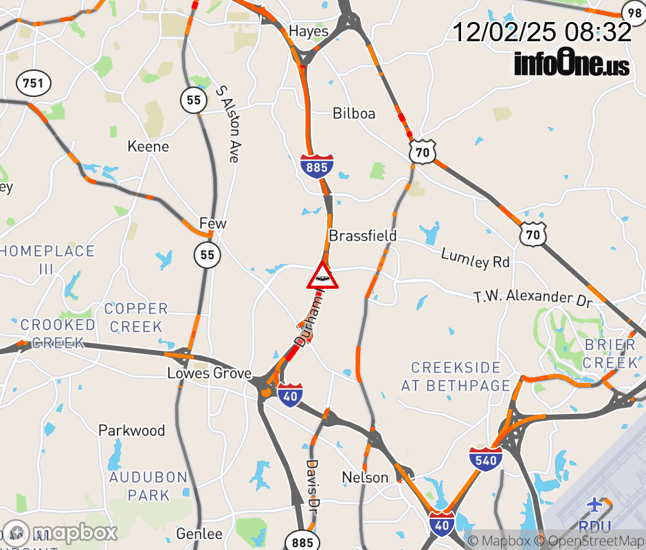 The left shoulder is closed at Exit 7 (TW Alexander). Updated: Tue 12/2/25 8:32 AM EST ![]() Updated: Tue 12/2/25 8:32 AM EST |