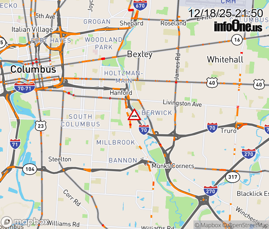 The right shoulder is blocked on I-70 East beyond Alum Creek Dr/Livingston Ave, due to a disabled vehicle. ![]() Updated: Thu 12/18/25 9:50 PM EST |