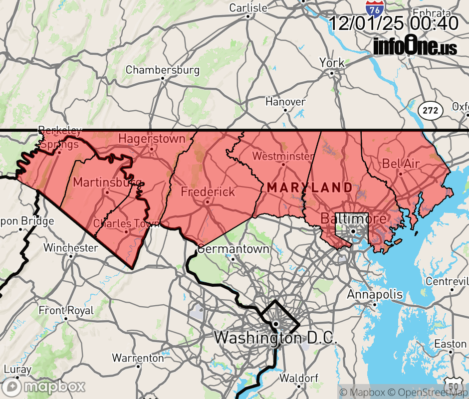 Canceled 12/1/25 7:12 AM Winter Weather Advisory issued December 1 at 12:38AM EST until December 2 at 1:00PM EST by NWS Baltimore MD/Washington DC ...FIRST WIDESPREAD WINTER EVENT OF THE SEASON... .Precipitation is expected to overspread the area after midnight tonight from southwest to northeast. While precipitation is likely to start as snow areawide, it is expected to mix with and change to sleet and freezing rain for most of the area. Locations along and south of US-50/I-66 likely end the event as rain as temperatures warm through the morning. Areas along the Mason-Dixon are most likely to remain all snow through the event, but that remains uncertain given exact low track. The Tuesday morning commute could be impacted for all areas in the Winter Weather Advisory. Updates to the forecast are likely, so please remain weather aware for the first widespread winter event of the season. * WHAT... Mixed precipitation expected. Total snow and sleet accumulations of 1 to 2 inches, with locally higher amounts upwards of 4 inches possible near the Mason-Dixon and higher elevations such as Parr's Ridge. Ice accumulations around up to one tenth of an inch. * WHERE... Portions of north central and northern Maryland and panhandle West Virginia. * WHEN... From 3 AM to 1 PM EST Tuesday. * IMPACTS... Plan on slippery road conditions. The hazardous conditions could impact the Tuesday morning commute. * ADDITIONAL DETAILS... Precipitation is expected to overspread the area after after midnight tonight. Precipitation is expected to start as snow before mixing with sleet and freezing rain. Should precipitation stay all snow or snow for a longer period of time, locally higher snowfall amounts would be possible. ![]() |