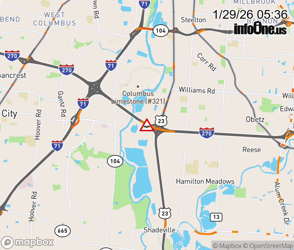 The left shoulder is blocked on I-270 East at US-23/S High St North, due to a crash. ![]() |