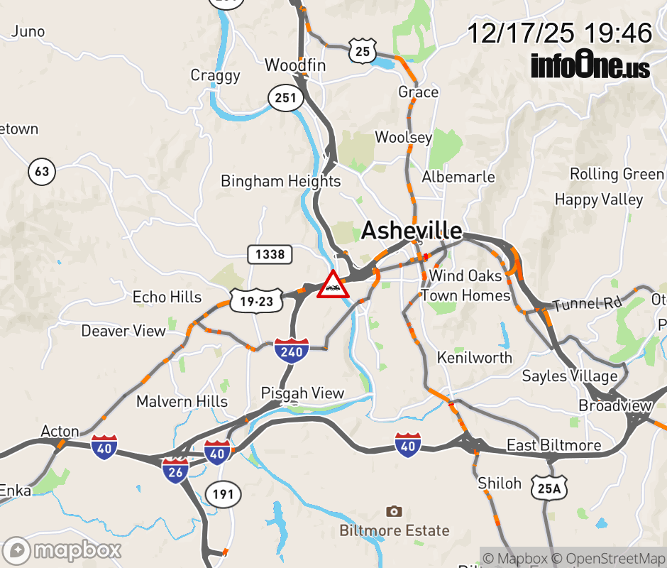 The right lane is closed before Exit 4B, Patton Ave. ![]() |