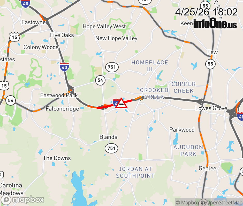 The right shoulder is closed after 274 (NC 751). Updated: Sat 4/25/26 6:02 PM EDT ![]() Updated: Sat 4/25/26 6:02 PM EDT |