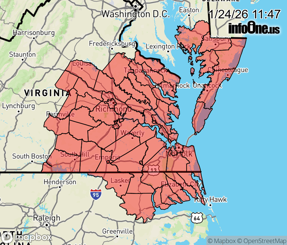 Canceled 1/24/26 12:00 PM Cold Weather Advisory issued January 24 at 11:46AM EST until January 24 at 12:00PM EST by NWS Wakefield VA The threat has ended. ![]() |