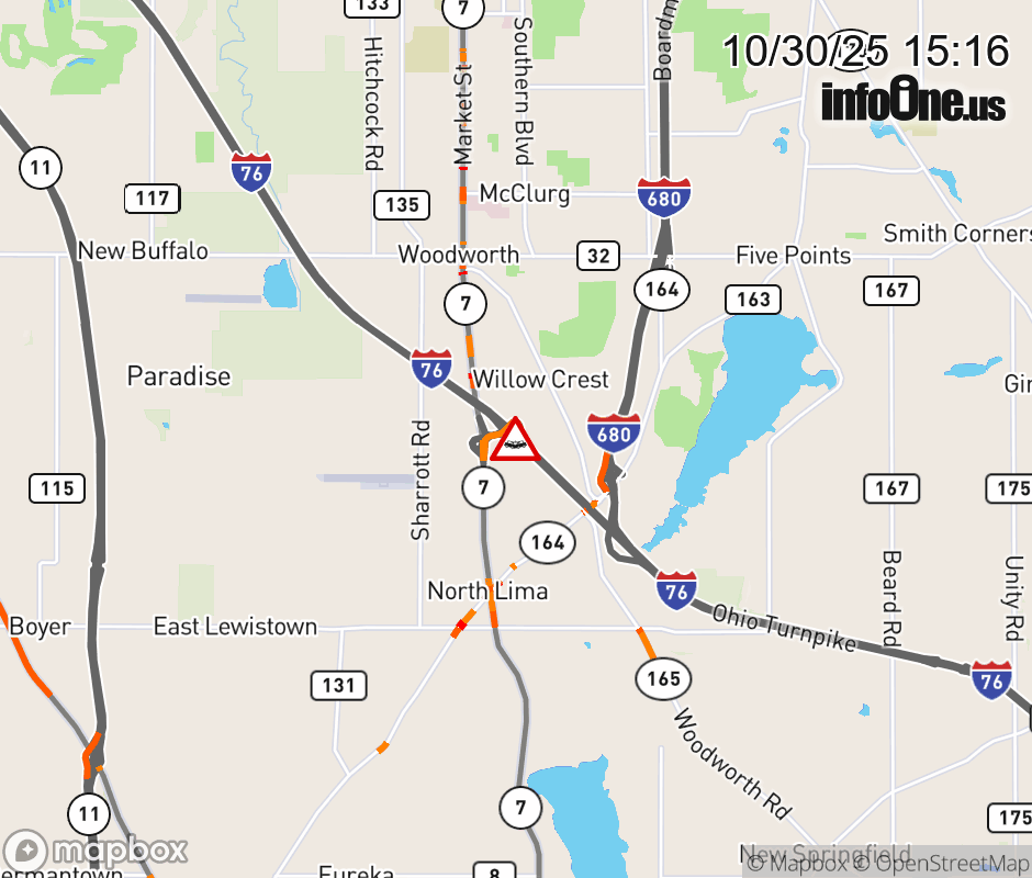 Expect lane closures on I-76 East (Ohio Turnpike) beyond SR-7, due to a crash. ![]() |