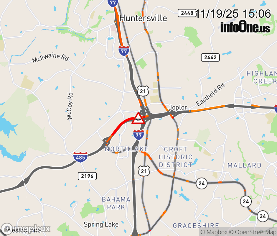 The four left lanes are closed two miles past Exit 23 C (I-77). Updated: Wed 11/19/25 3:06 PM EST ![]() Updated: Wed 11/19/25 3:06 PM EST |