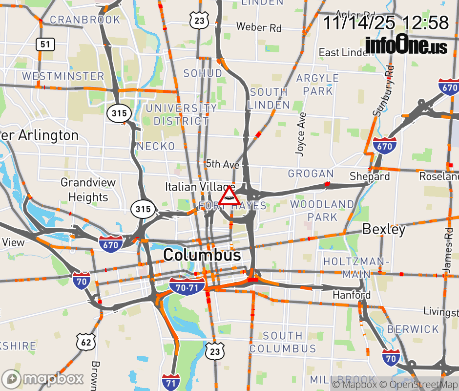 The right shoulder is blocked on I-670 West at High St/US-23 S/Third St, due to a crash. ![]() |