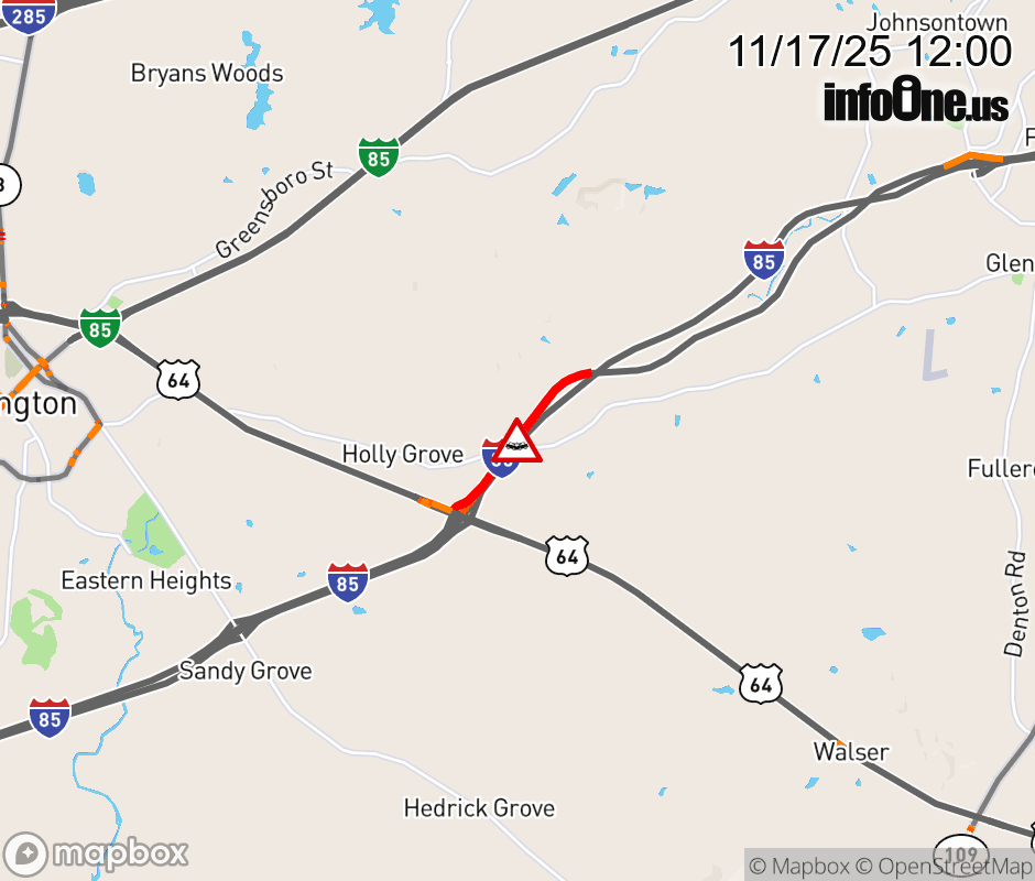 The two right lanes are closed at Exit 96 (US 64) Updated: Mon 11/17/25 12:00 PM EST ![]() Updated: Mon 11/17/25 12:00 PM EST |