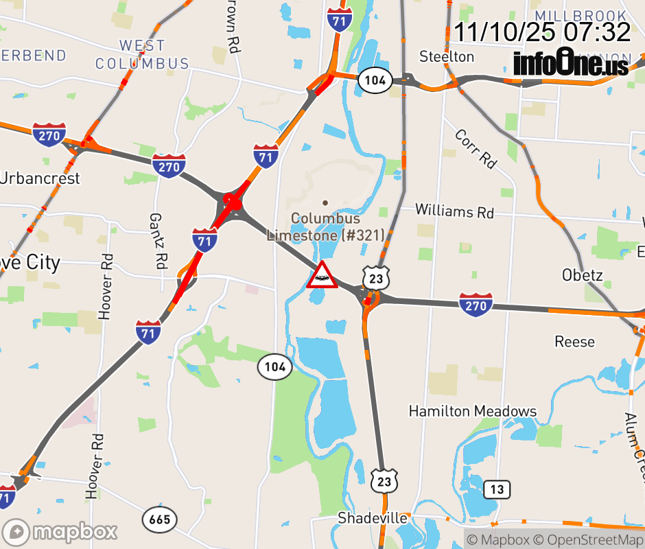 The right shoulder is blocked on I-270 East beyond I-71, due to a crash. Updated: Mon 11/10/25 7:32 AM EST ![]() Updated: Mon 11/10/25 7:32 AM EST |