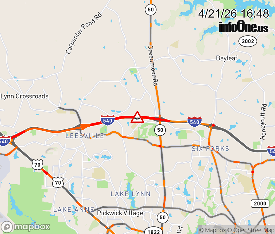 The left shoulder is closed after Exit 9 (NC 50). Updated: Tue 4/21/26 4:48 PM EDT ![]() Updated: Tue 4/21/26 4:48 PM EDT |