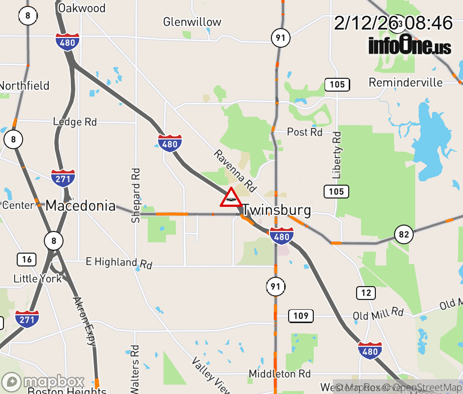 Expect lane closures on I-480/SR-14 West beyond SR-82/E Aurora Rd, due to a crash. ![]() |