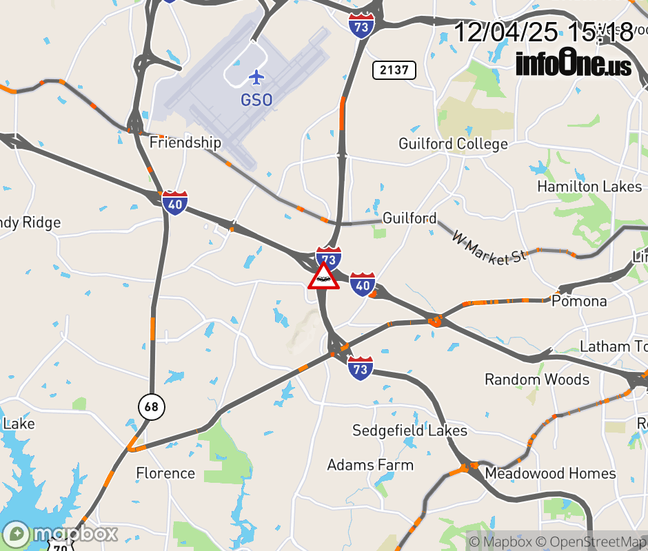 The ramp is narrowed at Exit 212B (I-73). ![]() |