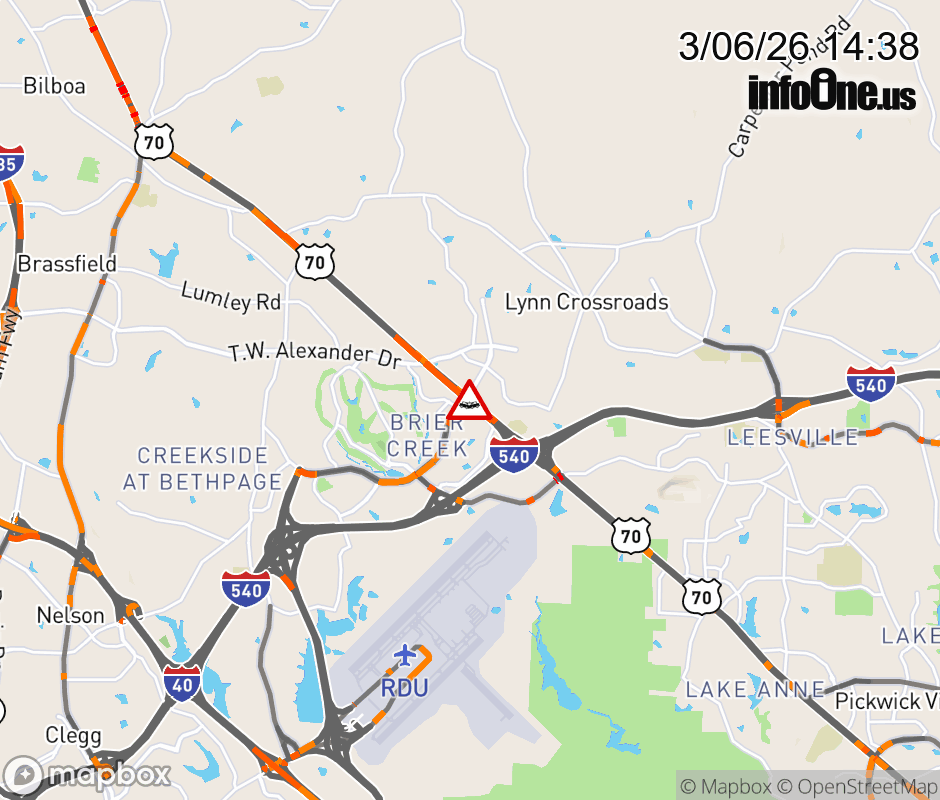 The right lane is closed near Brier Creek Parkway. ![]() |