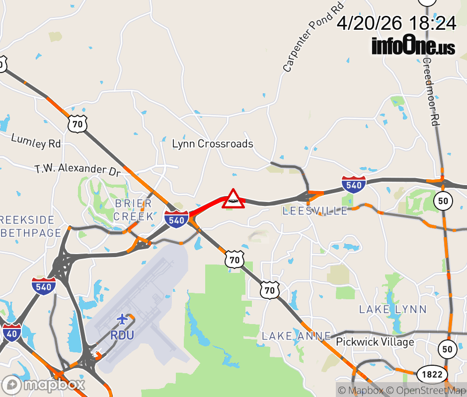 Canceled 4/20/26 6:36 PM Location: I-540E at MM 5, NC Vehicle Crash.