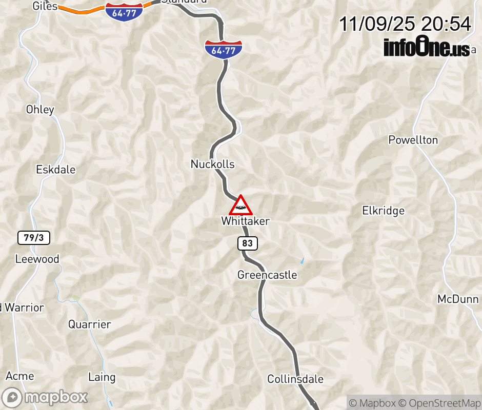 Canceled 11/9/25 9:44 PM Location: I-77 at MM 70.5, WV Accident.