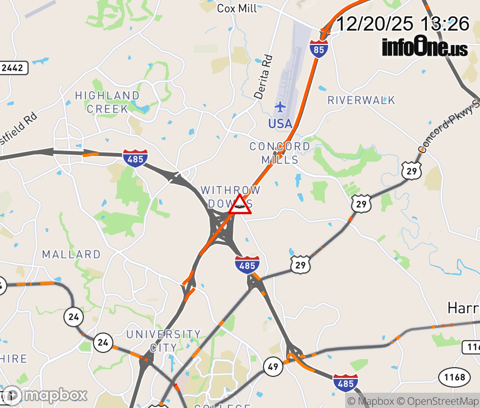 The two left lanes are closed past Exit 48 (I-485). ![]() |