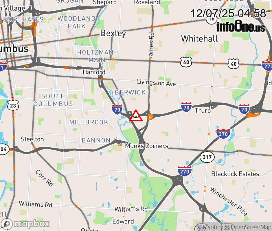 The right shoulder is blocked on I-70 East beyond US-33, due to a crash. ![]() |