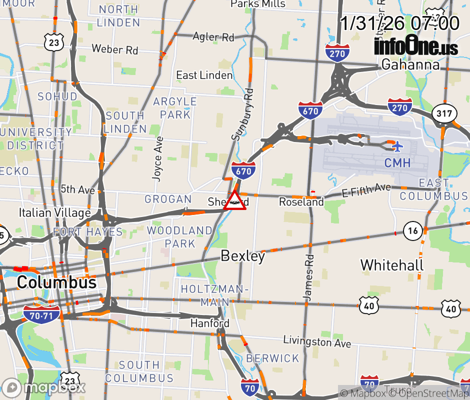 Canceled 1/31/26 7:42 AM Location: Ramp from I-670 E to E 5th Ave at MM 7.5, OH Accident.
