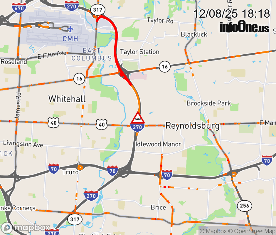 The right shoulder is blocked on I-270 South Collector at US-40/E Main St West, due to a crash. Updated: Mon 12/8/25 6:18 PM EST ![]() Updated: Mon 12/8/25 6:18 PM EST |